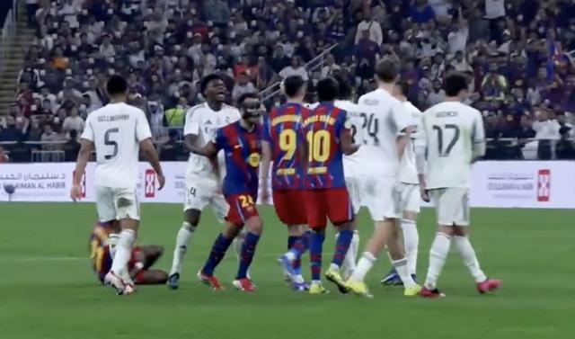 北京时间1月12日,西班牙超级杯决赛,巴塞罗那3-2皇家马德里,夺得冠军。据《马卡报》报道,在比赛中,巴萨球员亚马尔和皇马球员赫伊森之间发生了争执。