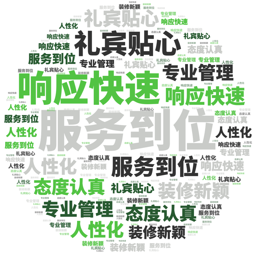 点评指数:点评指数平均得分为131.32,整体指数呈小幅下跌,好评维度平均是差评维度的1.65倍。好评关键词主要是服务贴心、响应快速、床品舒适等,差评主要集中在服务冷漠、设备老化、灯光暗等问题。