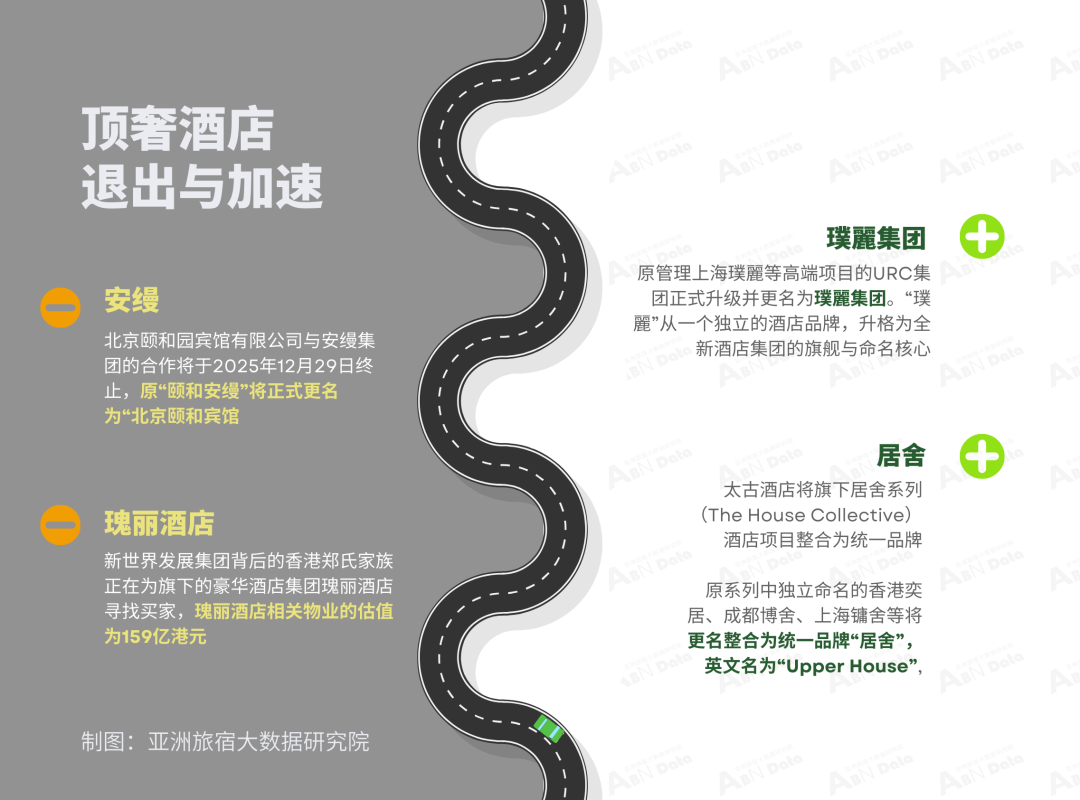 顶奢酒店的退出与加速|12月,多家顶奢品牌在华运营策略出现调整,有面临营收下滑或者资产腾挪的情况,也有展开规模化和集团化的小众酒店品牌正在翘动更多的市场,加快布局速度。