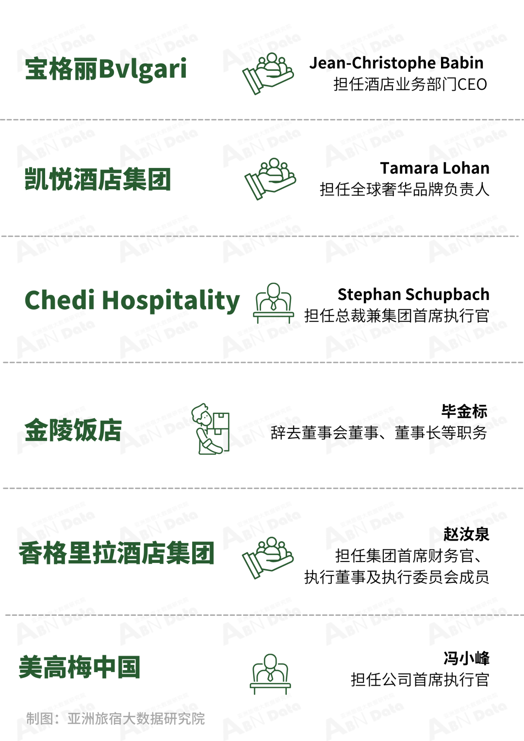 2025年最后一个月,共有6家酒店集团出现重要人事变动,本月海外企业宣布的高管人事履新集中在奢华品牌部门,本土企业则是领导班子调整及升任。国际企业中, 一是宝格丽Bvlgari宣布现任首席执行官 Jean-Christophe Babin 将于2026年7月1日离任CEO职务,由现任宝格丽营销与传播副总裁 Laura Burdese 接任。 Babin在离任CEO后仍将深度参与宝格丽的长期战略与业务发展,继续担任宝格丽董事会主席,同时兼任宝格丽酒店业务部门CEO及宝格丽基金会主席,确保品牌在奢侈珠宝、生活方式与社会责任板块的战略连续性。二是凯悦酒店集团宣布任命Tamara Lohan为全球奢华品牌负责人。Tamara于2023年随凯悦收购她创立并运营逾二十年的精品及奢华酒店平台Mr & Mrs Smith而加入凯悦。作为全球奢华品牌负责人,她将主导凯悦全球奢华品牌战略,同时提升凯悦奢华品牌组合的一致性与宾客体验。三是Chedi Hospitality宣布任命Stephan Schupbach为总裁兼集团首席执行官。Stephan深耕奢华酒店行业三十余载,曾在多个国际知名酒店集团担任高级领导职务。Stephan将负责监督支持集团扩张计划的多项战略举措,包括推出一个全新的澈笛子品牌,此外,他还将推动建立专门的餐饮事业部,专注于开发标志性餐饮品牌和独立餐饮概念,从而强化澈笛在关键市场及生活方式领域的品牌影响力。