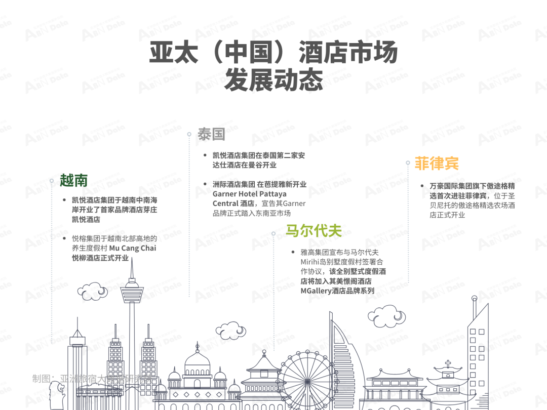在越南,凯悦酒店集团于越南中南海岸开业了首家品牌酒店——芽庄凯悦酒店。酒店建筑设计灵感源自当地渔村风情与周边海洋元素,拥有434间客房及套房。此外,悦榕集团宣布位于越南北部高地的养生度假村 Mu Cang Chai悦柳酒店正式开业,标志着悦榕集团旗下悦柳品牌在越南的首个酒店的亮相。