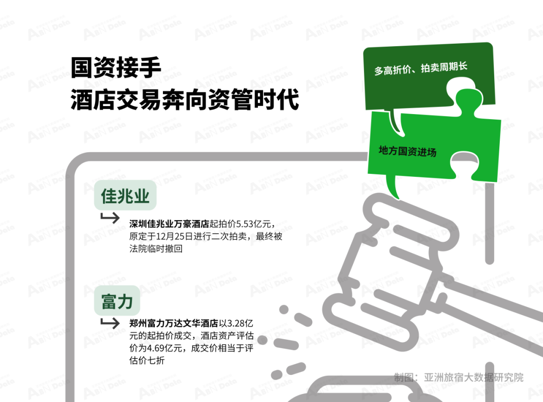 国资接手,酒店交易奔向资管时代|除了万达、富力、恒大等不断出清项目的地产系酒店企业,本月将酒店资产摆上拍卖架的还有佳兆业,且资产估值缩水近八成。月内,深圳市龙岗区大鹏新区大鹏街道佳兆业金沙湾大酒店01不动产,即“深圳佳兆业万豪酒店”,原定于12月25日进行二次拍卖,最终被法院临时撤回。标的评估价9.88亿元,起拍价5.53亿元。该房产为深圳市金沙湾大酒店有限公司所有,是佳兆业集团的一家全资子公司。这家酒店首次挂拍在2023年12月,起拍价16.71亿元,评估价23.87亿元,因无人报名,在开拍前被撤回。