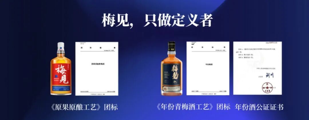 2023年,梅见首创了基于浸泡工艺的原果原酿工艺,随后牵头制定《原果原酿青梅酒》团体标准,明确规定必须使用中国原生青梅、两年陈清香型高粱酒及经过一年陈化,且自然酿造。