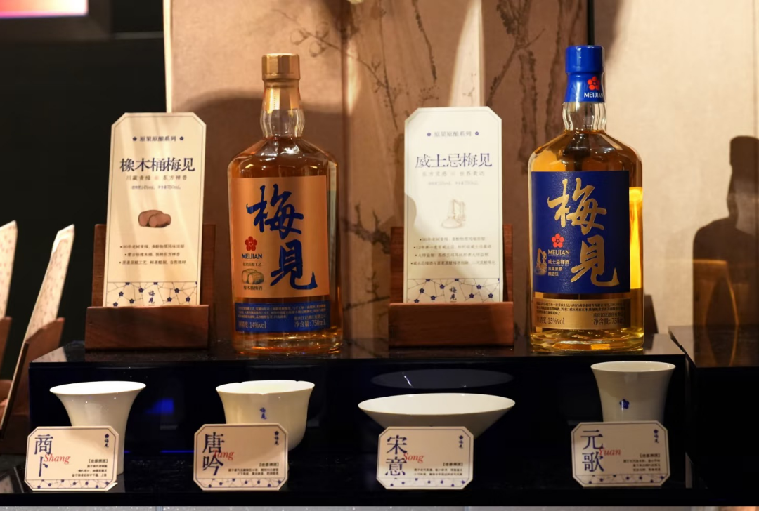 例如三年陈坛梅见,复合十种梅香,经三年陶坛陈放,高含量多酚让酒液回甘持久;古树梅见,以百年梅树之果,配三年陈单一高粱酒,入坛两年,再经蒙古栎橡木桶一年陈化,年产仅千瓶。