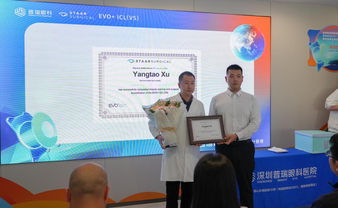 1月11日,深圳普瑞眼科医院举办“高清视界,不分昼夜”EVO+ ICL(V5)新品发布会。作为瑞士STAAR Surgical公司在中国内地首批认证的EVO+ ICL(V5)临床应用合作中心,深圳普瑞眼科此次不仅正式发布了该项前沿视觉矫正技术,更集中展示了由“双院长、双博导”领衔的中山眼科博士团队,凸显其在高精度屈光手术领域的专业实力与技术保障。