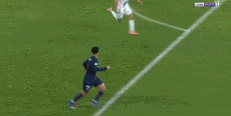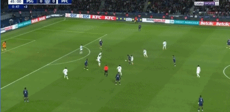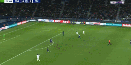 第14分钟,KK右路传中被挡出,维蒂尼亚弧顶处凌空抽射稍稍高出