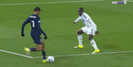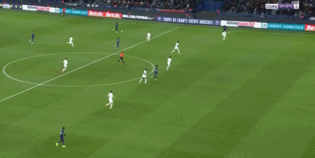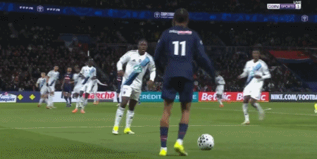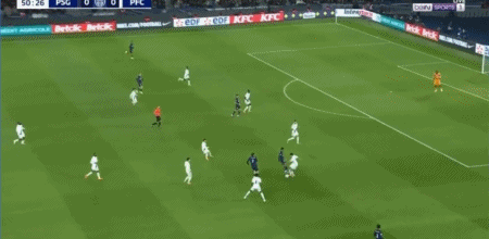 第70分钟,前场抢断成功,登贝莱插上推射被恩坎巴迪奥出击挡出
