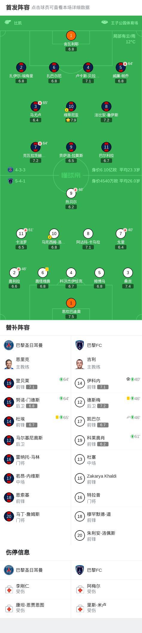 第65分钟,换人,登贝莱、门德斯、杜埃登场,KK、马尤卢、帕乔被换下