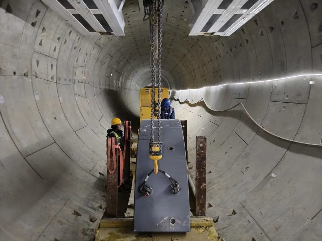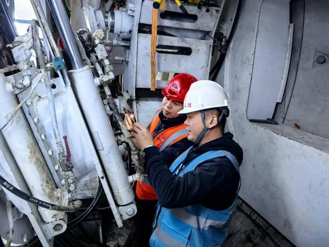 面对上述难题,9号线建设团队靶向施策,以技术创新力啃“硬骨头”。针对富水卵石层,他们为盾构机配备组合刀盘并动态调整开口率,使刀具磨损率降低20%,同步升级盾尾密封;针对软土回填区风险,通过地质雷达定位软弱夹层,构筑“加固帷幕”;在王裴区间联络通道施工中,团队采用土压平衡顶管机,搭配钢套筒始发接收技术与三重盾尾刷密封系统,防范涌水涌砂风险;优化渣土改良配方,注入泡沫与膨润土混合浆液,破解粉质黏土结泥饼难题;依托高精度导向系统实时监测,动态调整参数,实现精准贯通,为富水软土区同类工程积累了宝贵经验。开源路站创新旋挖钻辅助成槽技术,显著提升工效。