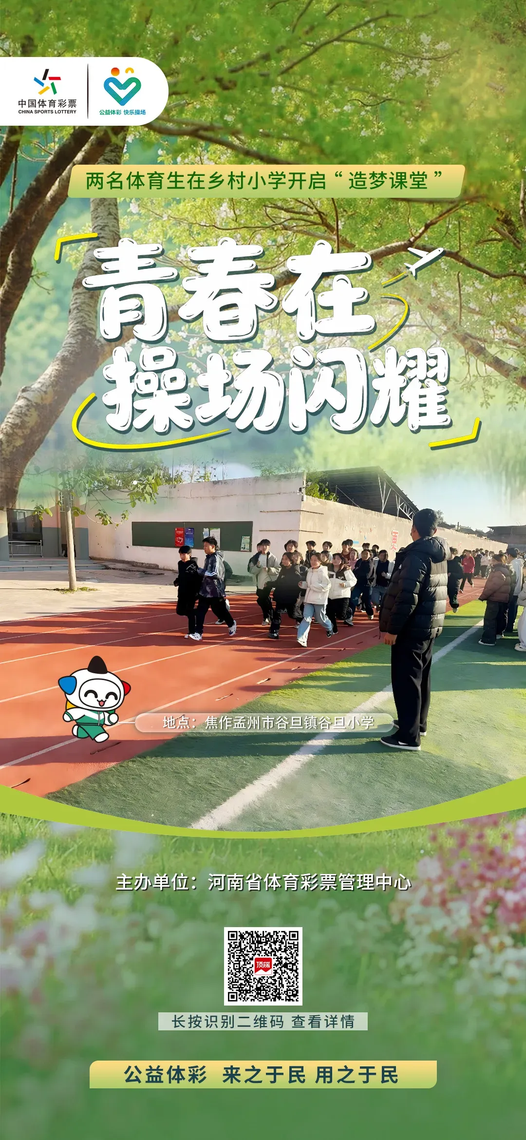 焦作谷旦小学的跑道边,两名体育生支教老师的身影格外亮眼——作为“公益体彩 快乐操场”的青春参与者,他们把专业的运动技巧拆成趣味游戏,带着孩子们练节奏、拼协作,让乡村操场从“闲置场地”变成了“成长赛场”。体彩公益牵起的线,让年轻的专业力遇上乡村孩子的运动渴望,把每一次起跑、每一回协作,都变成了梦想发芽的声音。