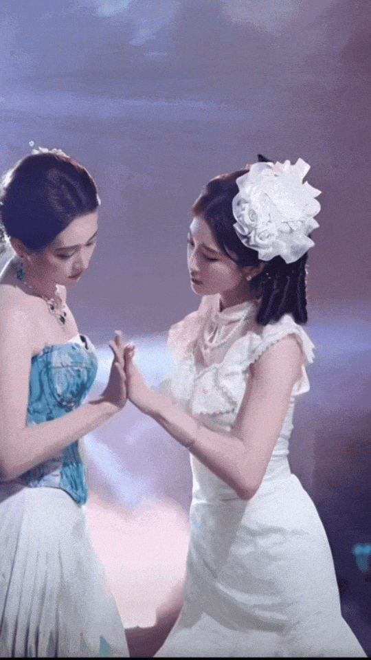 在同个直播间,甚至能看到扮上红毯造型的刘亦菲,与《金粉世家》女主角白秀珠(刘亦菲饰)手牵手跳舞,瞬间打破次元壁。