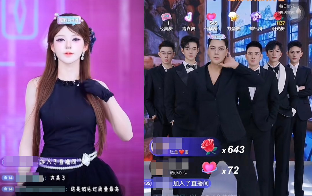 她们以复刻明星的经典造型为标志,模仿明星的动作、神态,不断吸引着直播平台上的过路人,成为最出圈的团播直播间之一。
