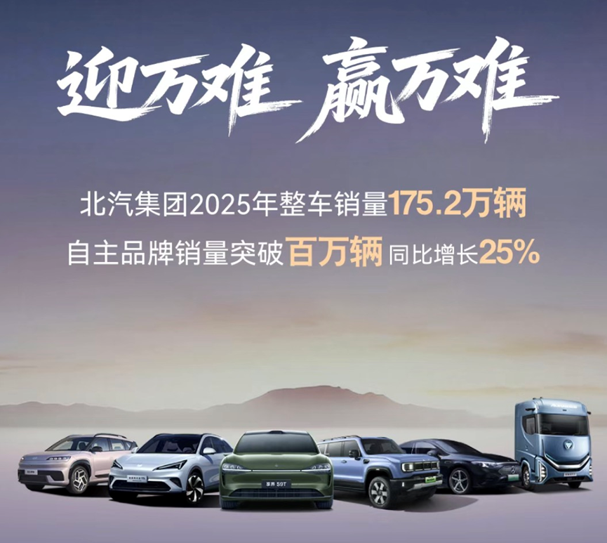 北汽集团于此时点公布的业绩,恰如一份颇具时代参照价值的样本。175.2万辆的全年销量与5.6%的增幅背后,是一张截然不同的“结构图谱”:自主品牌强势回归百万阵营,新能源车销量同比激增95%,出海业绩首破30万辆大关。