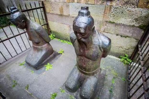栖霞岭岳王庙前跪着的秦桧及其妻子王氏。