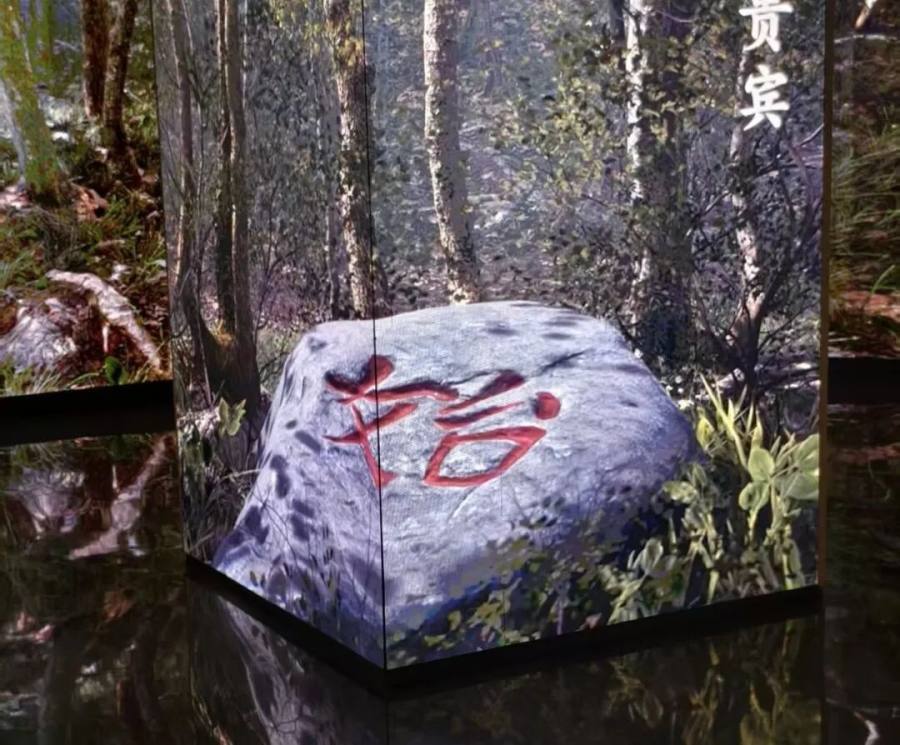 大堂内,17米高、7.3吨重的吉尼斯纪录玻璃幕墙豁然洞开,光线穿透时竟有天光泄地之感。两幅巨幅《开泰说》书法气势恢宏,英文版以汉字形态组合单词,中西合璧的巧思令人称奇。