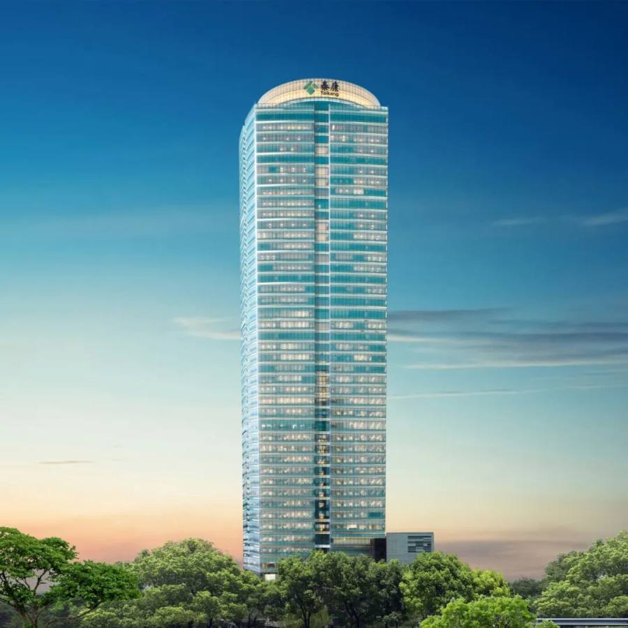 泰康总部大厦的身影,在CBD建筑群中格外醒目。其造型源自良渚文化玉琮,外方内圆礼敬天地,印纹烤瓷玻璃幕墙摹仿玉琮浮雕纹理,将五千年文明底蕴融入现代建筑美学。