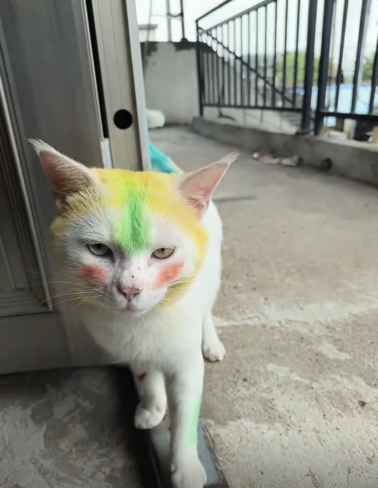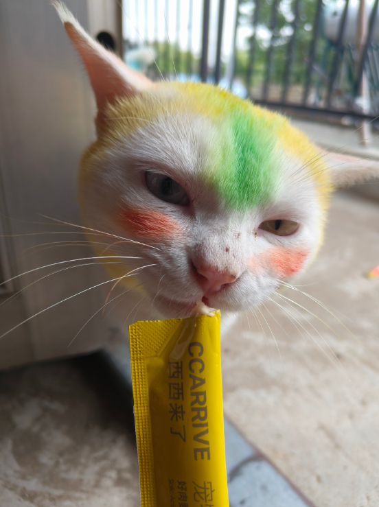 可以用无毒颜料给它涂了花纹 ,相当于是手动给猫咪升咖了!