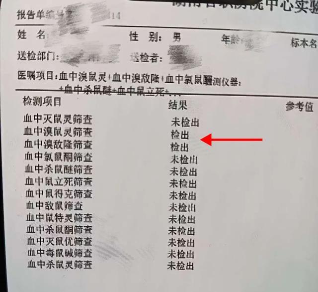随后,医院联系湖南省职业病防治院进行毒物检测。三天后检测结果证实:患者为溴鼠灵、溴敌隆中毒。