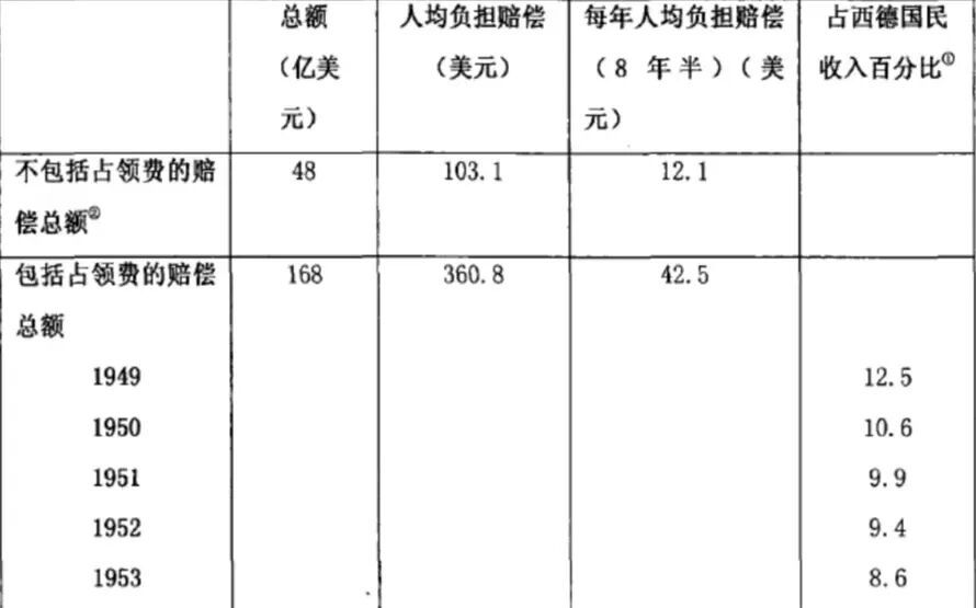 此时两个德国已向美苏阵营偿付了824亿马克,约330亿美元战争赔偿(不包括西德继续偿付的债务)。