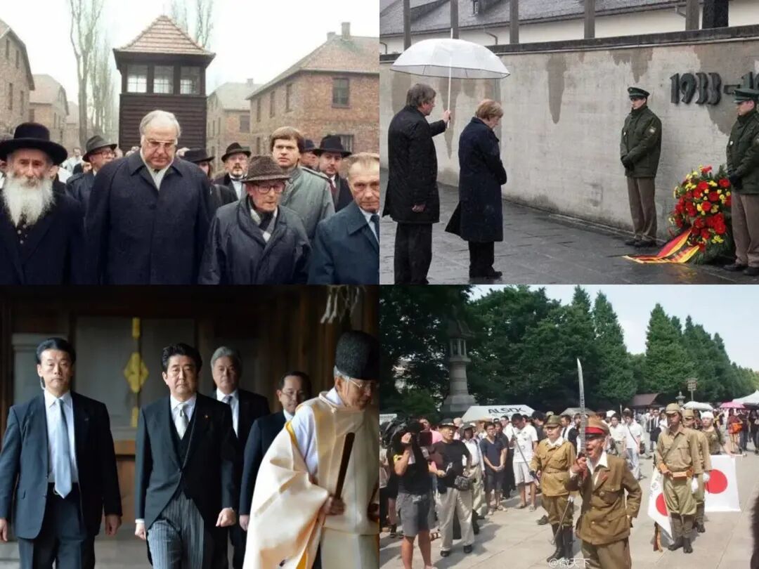 ▲德国总理向集中营遇难者献花VS日本首相参拜祭奠战犯的神社