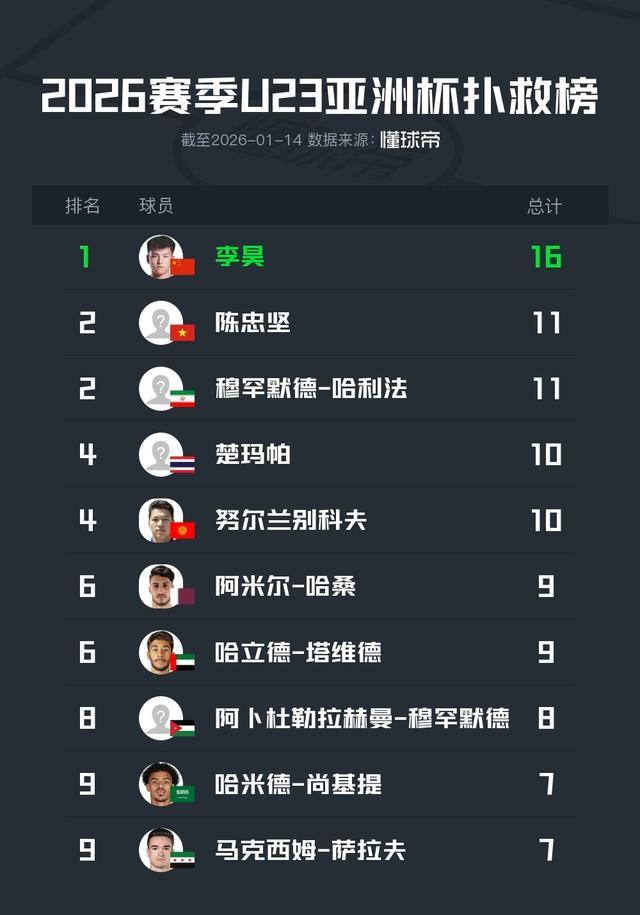 在本届赛事扑救数据上,李昊在扑救榜上以16次大幅领先,且0失球。中国U23也和日本U23成为了本届赛事唯二小组赛阶段未丢球的球队。