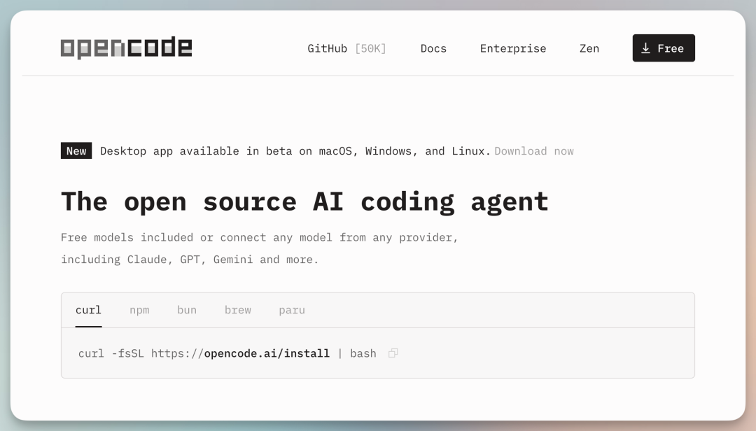 OpenCode不仅开源,提供免费模型,授权登录用付费模型。