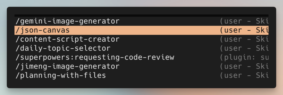 因包含canvas,模型会推理出要用json-canvas Skill。