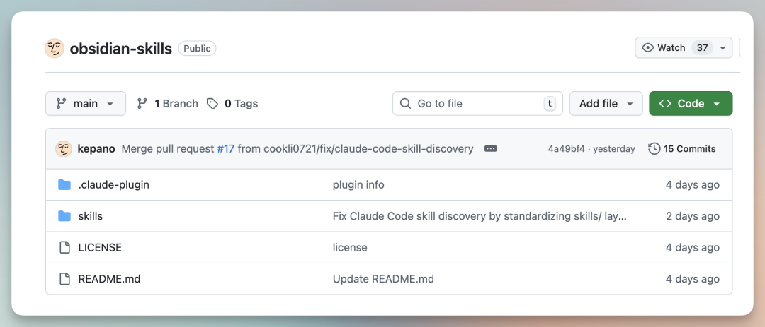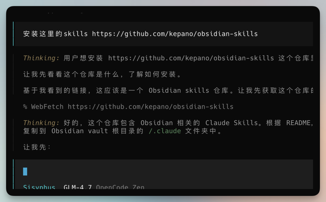 “安装这里的skills https://github.com/kepano/obsidian-skills ”