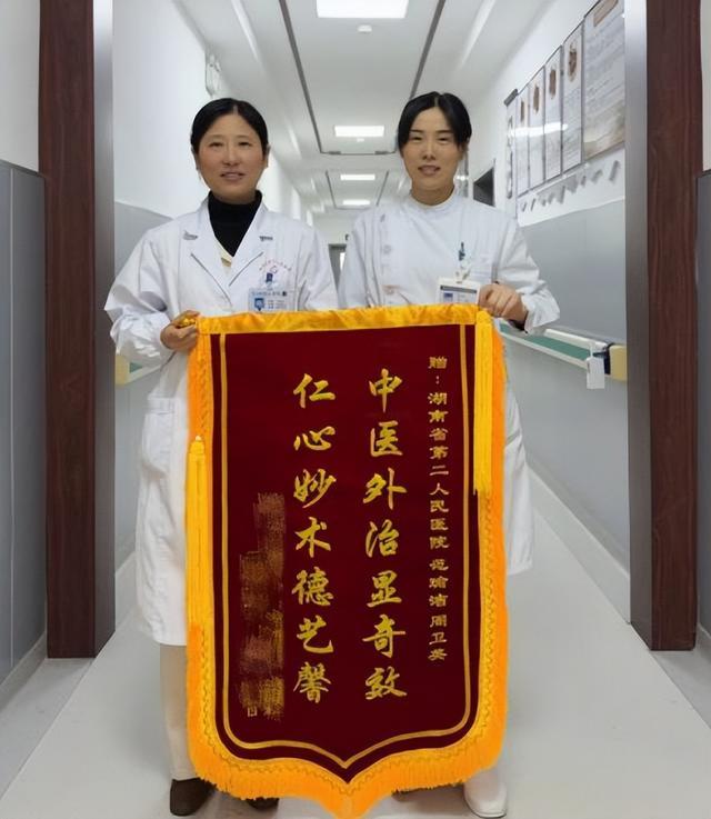 “专门制作了一面锦旗邮寄过来,非常感谢您们高超的技术和对我的关爱!”一面从武汉寄往长沙的锦旗,承载着患者黄先生二十年病痛消除的喜悦,与对医护人员的感激之情。