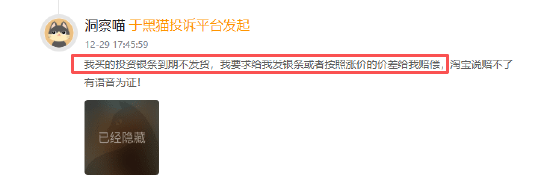 关键词:淘宝店铺出售假银条拖延发货,平台客服消极处理