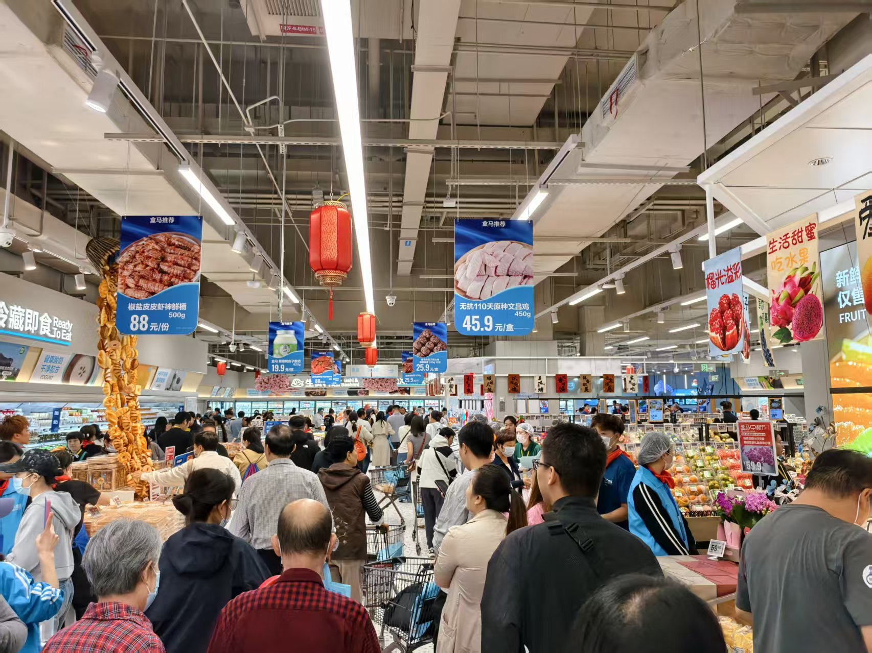 盒马鲜生石家庄首店自开业以来,一直保持着火爆状态,在工作日的晚上,店里随处可见年轻夫妇、结伴的白领。