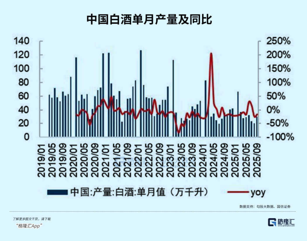 2024年,中国白酒产量414.5万吨,不足2016年(1358.4万吨)的三分之一。