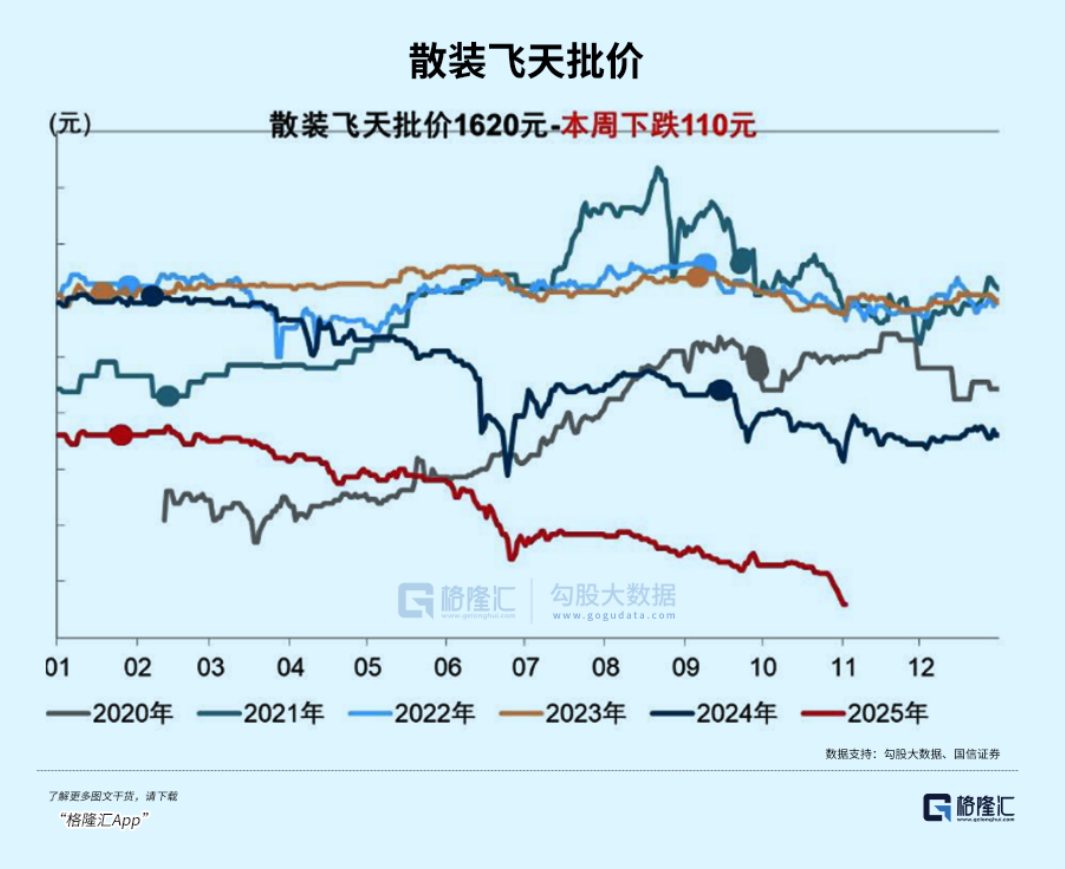53度飞天茅台散瓶批发价跌破1600元,报1640元的历史新低,较年初跌超31%。