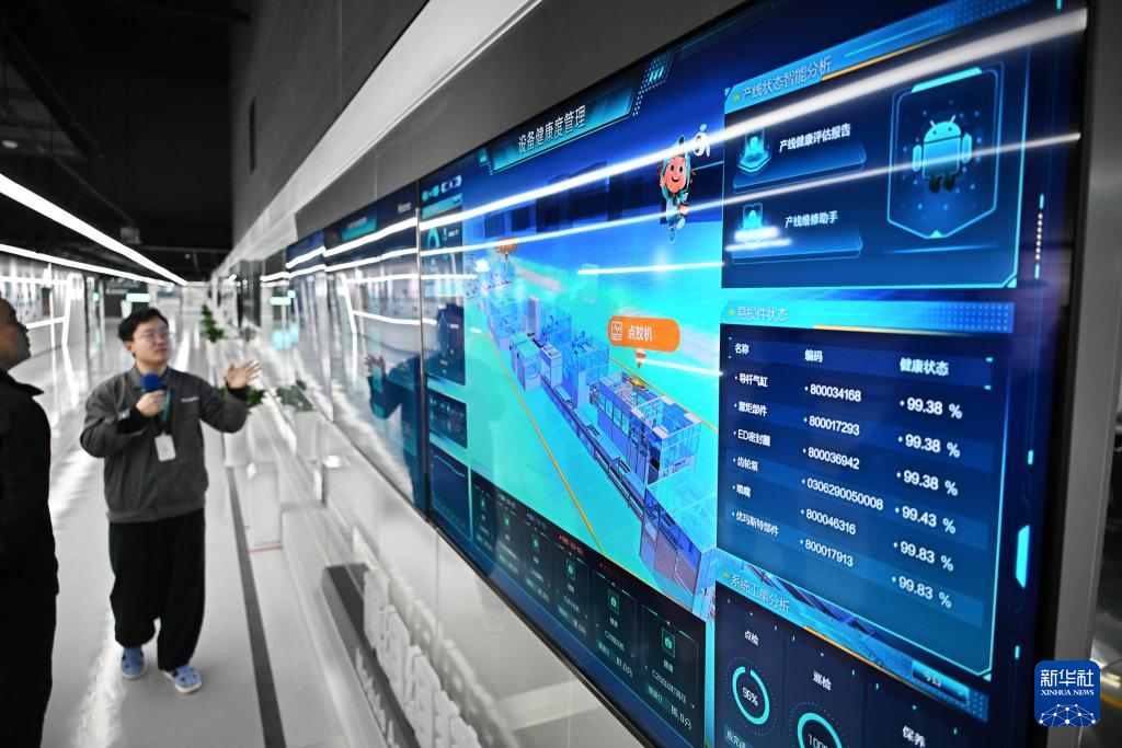 海信视像工作人员在介绍青岛工厂基于物联网技术构建的设备健康度管理模型(1月13日摄)。