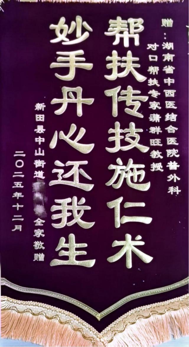 近日,湖南省中西医结合医院(湖南省中医药研究院附属医院)医务管理部收到一份特别的“礼物”——一封来自新田县中医医院患者的感谢信与一面锦旗。信纸虽轻,情谊却重,字字句句,承载着对医院对口帮扶工作最深切的感激,也记录下一段跨越260公里的生命接力。