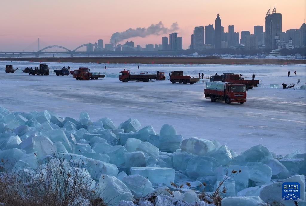 寒冬时节,第二十七届哈尔滨冰雪大世界正值迎客旺季。在距园区不远处的松花江哈尔滨段江面上,存冰开采工作已全面开启。哈尔滨冰雪大世界每年都会在采冰季挑选出一批冰块储存,采用传统储冰与现代多层保温技术相结合的方式,让冰块储存近一年时间不融化,供下一届冰雪大世界建设时使用。