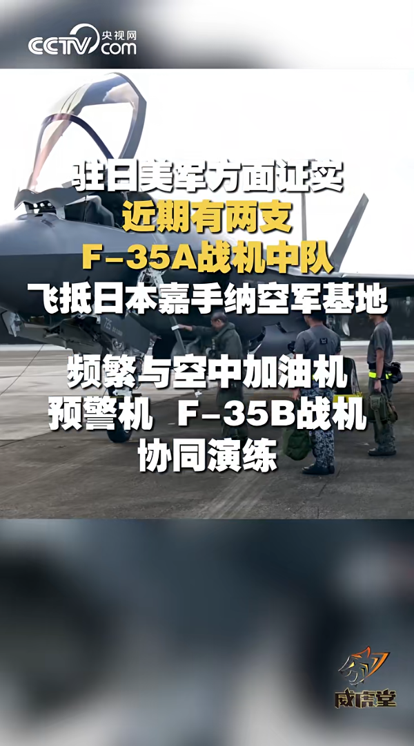 1月17日,小央视频消息,驻日美军方面证实,近期有两支F-35A战机中队飞抵日本嘉手纳空军基地,频繁与空中加油机、预警机、F-35B战机协同演练。