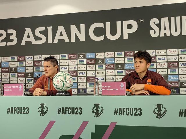 懂球帝记者 现场报道,在U23国足点球淘汰乌兹别克斯坦,历史性地晋级U23亚洲杯4强后,本场比赛最佳球员李昊随主教练安东尼奥出席了新闻发布会。