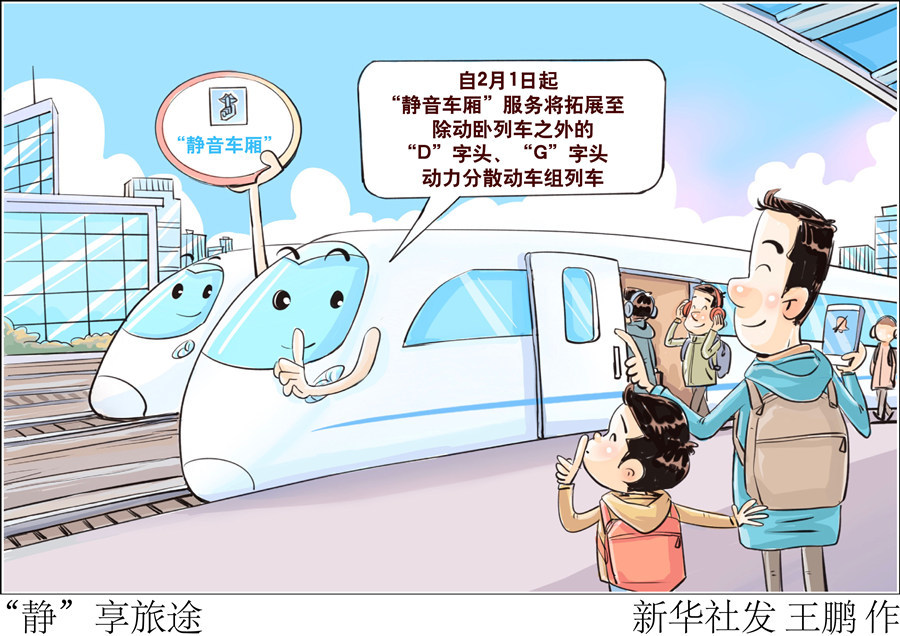 新华社北京1月17日电(记者樊曦)记者17日从中国国家铁路集团有限公司获悉,为进一步提升旅客出行体验,铁路部门大力推广“静音车厢”服务,自2月1日起,“静音车厢”服务将拓展至除动卧列车之外的“D”字头、“G”字头动力分散动车组列车,届时全国铁路提供“静音车厢”服务的列车将增至超8000列,更好地满足广大旅客对美好旅行生活的需求。