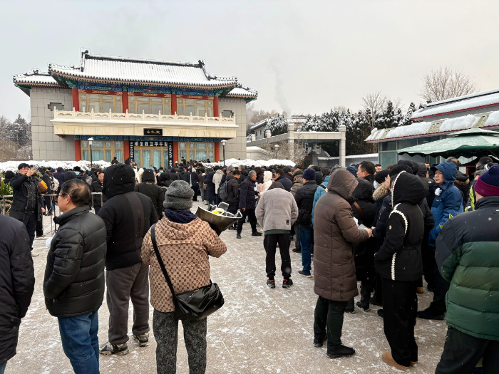 1月17日下午开始,北京迎来今冬最大一场全市性降雪,气温最低达到零下11度。大皖新闻记者在现场看到,漫天飞雪将八宝山殡仪馆笼罩在肃穆的洁白之中,但没有影响前来吊唁的人们,人员越聚越多,队伍长度超过200米。其中,韩国围棋名宿曹薰铉作为韩国围棋界的代表,也来到了八宝山殡仪馆。