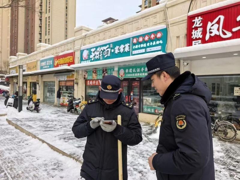 各街道执法队加强巡查督导,逐户宣传动员,督促临街单位、商户严格落实“门前三包”责任制,及时清扫门前积雪积冰。对拒不履行责任的,依法进行劝导和查处,形成“各方参与、共治共享”的清雪合力,共同维护市容环境整洁有序。
