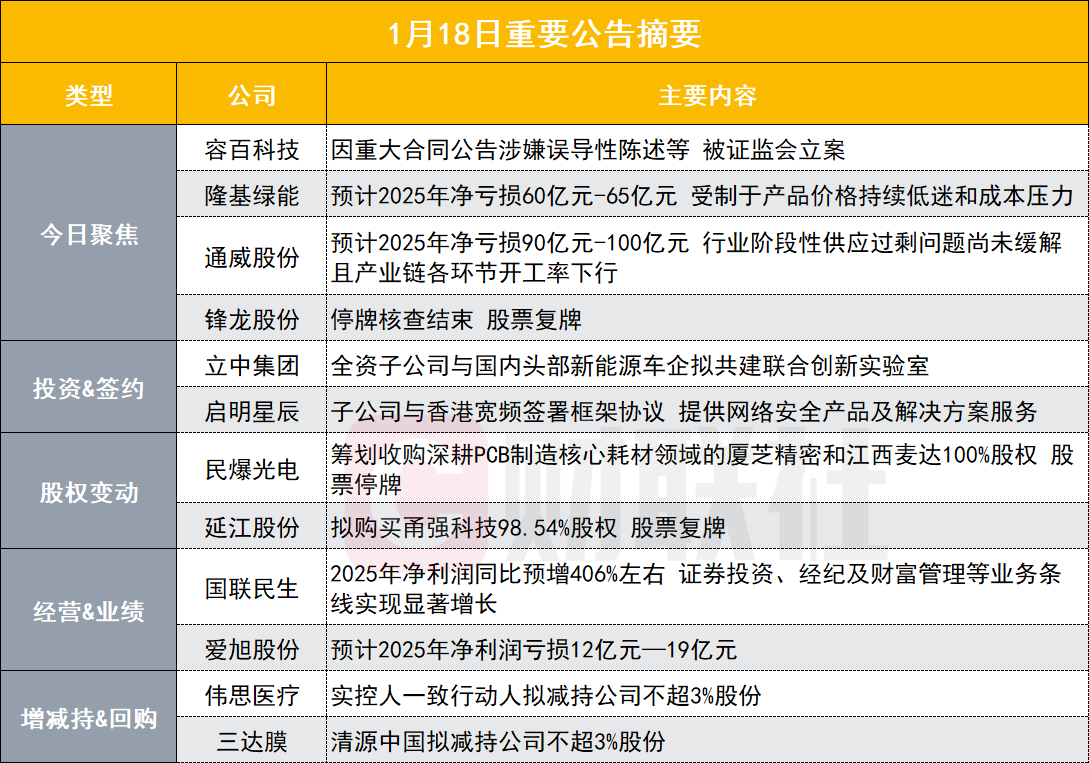 容百科技(688005.SH)公告称,公司于2026年1月18日收到中国证监会下发的《立案告知书》,因公司重大合同公告涉嫌误导性陈述等,根据相关法律法规,中国证监会决定对公司予以立案。目前公司各项经营活动和业务均正常开展。立案调查期间,公司将积极配合中国证监会的相关工作,并严格按照相关法律法规和监管要求及时履行信息披露义务。