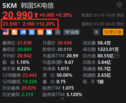 韩国SK电讯盘前大涨12.2%。消息上,韩国移动通信运营商SK电讯推出了其车载人工智能(AI)体A. Auto,并通过将其部署在雷诺韩国新推出的车型Filante上,将其推向市场。SK电讯公司表示,这款全新的车载人工智能体不仅能执行简单的语音指令,还能全面理解驾驶员的行为模式和实时驾驶状况。它直接嵌入到车辆的信息娱乐系统中,使驾驶员能够在驾驶过程中免提且安全地使用人工智能。