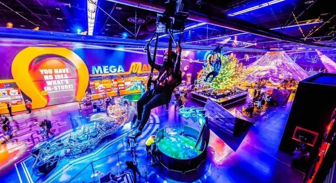 这里没有简单的货架陈列,整个空间被划分为四大主题区域、超过60个独特环境。从地板到天花板的360度投影将视觉包裹感做到极致。