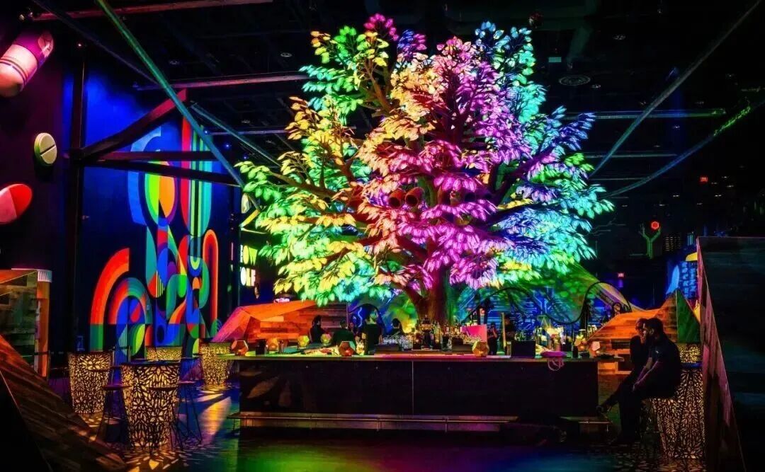 餐饮也被深度主题化。Oddwood酒吧的核心是一棵25英尺高的数字枫树,其上5万片LED树叶被单独编程,随音乐变幻光影。其他如Rocket Fizz糖果店等,所有品牌都通过定制化设计,无缝融入整个科幻叙事中。