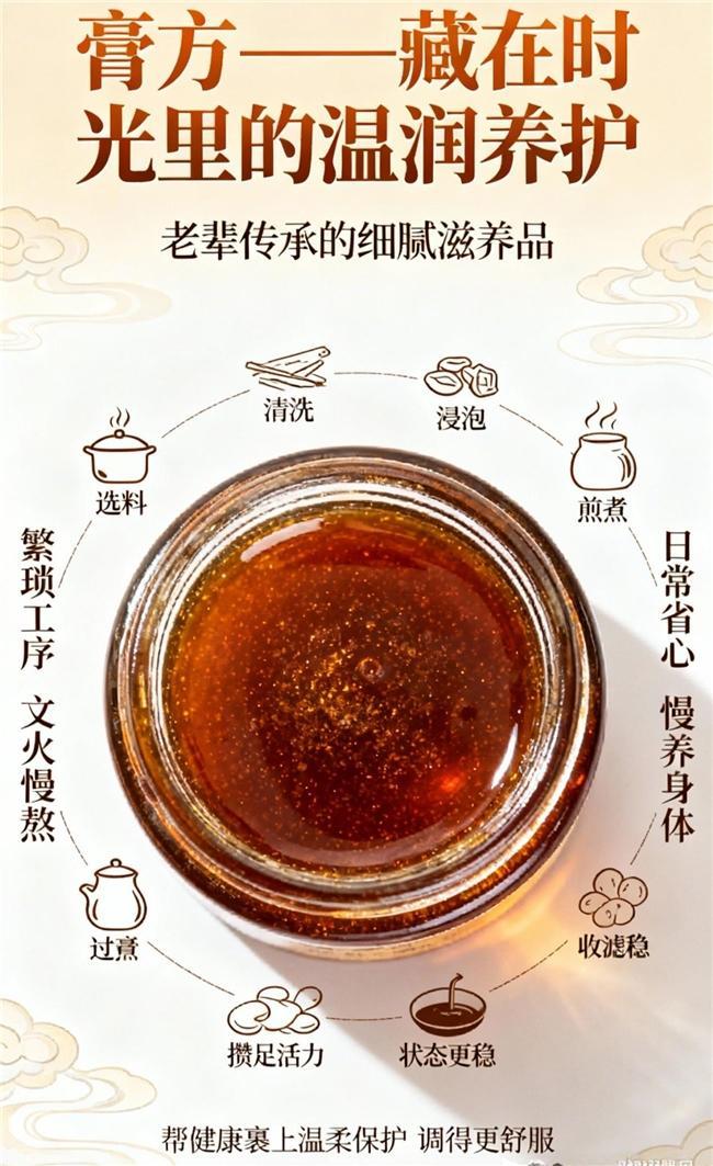 核心定位:主打浓醇高倍滋养,专为秋冬季节气血亏虚、畏寒明显的女性设计,依托传统膏方工艺浓缩营养,补气养血力度充足,能深层滋养身体,兼顾保暖与调理需求,是秋冬养生的优选好物。