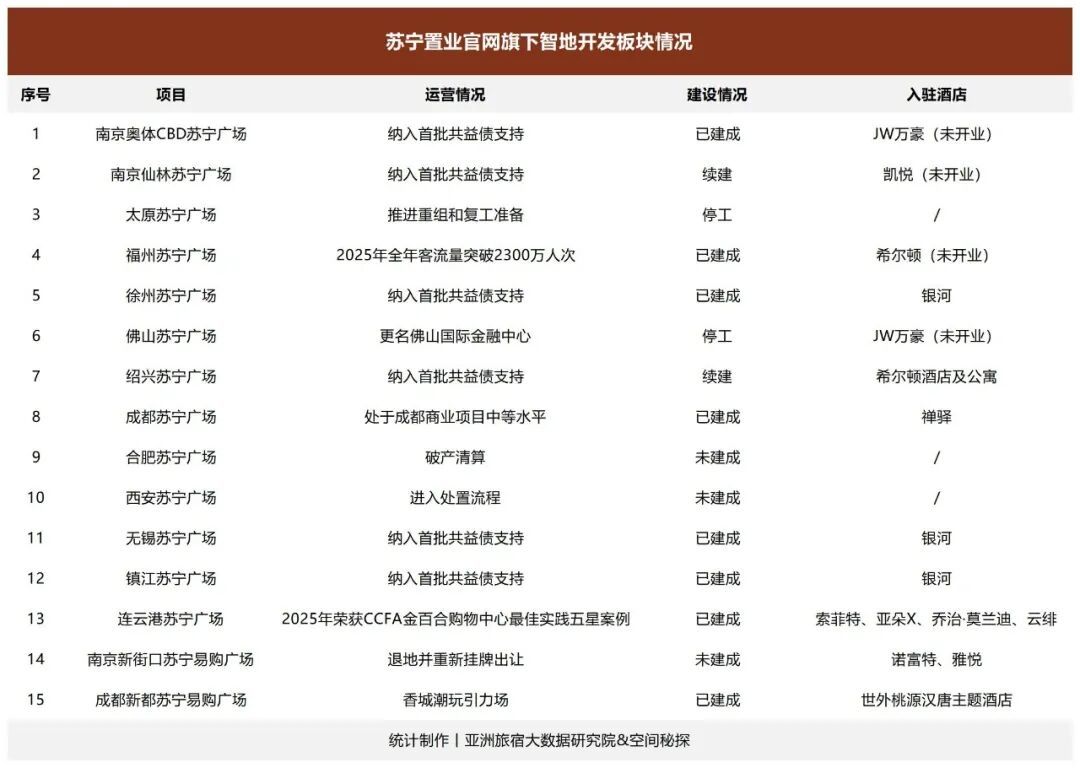 奇怪的是,自2020年下半年开始,苏宁集团的债务危机便已出现,并在2021年至2023年间逐步加剧,直到2025年进入重整程序。在此期间,苏宁集团的各种在建项目停滞、品牌合作中断、资产处于处置与收缩边缘,但为何2026年开年以来,却重资产投资开了一家酒店?