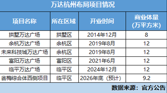 目前,万达在杭州已开业的5座广场中,除最早的拱墅万达广场为重资产项目外,余杭、富阳、未来科技城及临平万达广场均为轻资产模式。