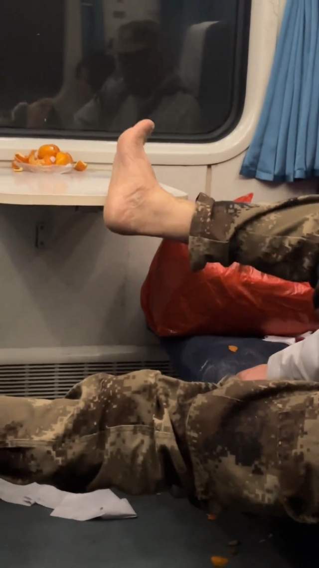 1月20日,一段社交平台上发布的视频显示,一男子在乘坐火车时,将鞋袜脱下,使用小桌板边沿搓脚,随后又将脚踩在列车座椅上,用座套摩擦搓脚。
