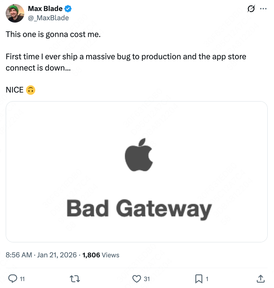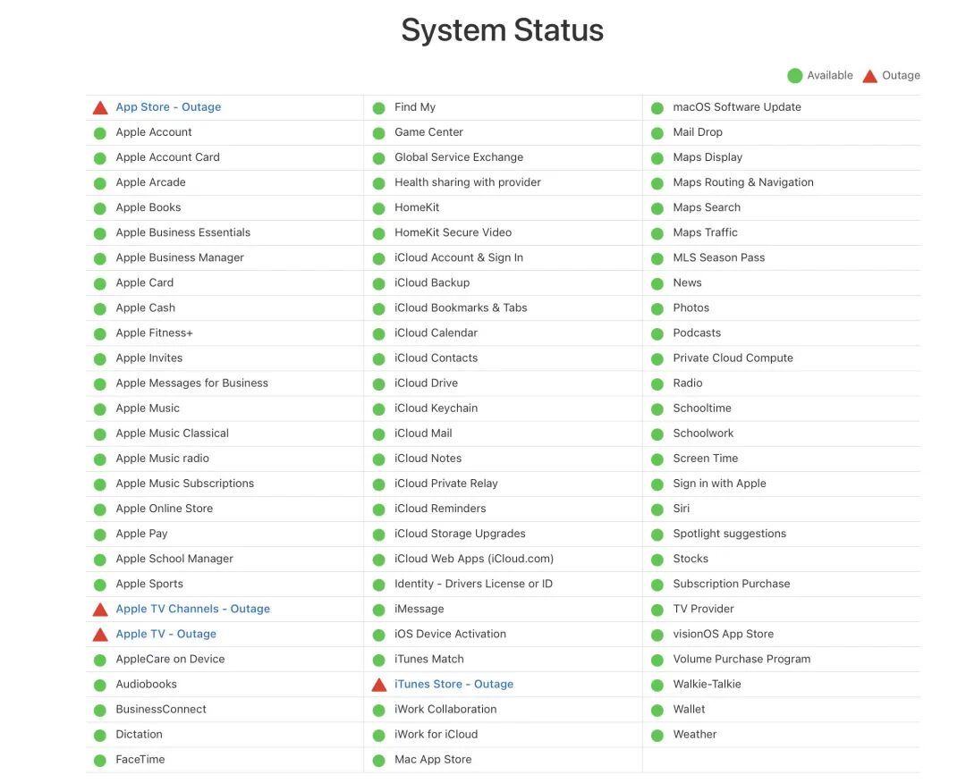 2026 年 1 月 21 日上午,苹果多项核心服务突发故障。苹果系统状态页面显示,App Store、Apple TV、iTunes 商店出现服务中断,照片应用、iMessage 以及 iCloud 版 iWork 也同步出现功能异常,涉及下载、消息通信与云端文档等多个高频使用场景。
